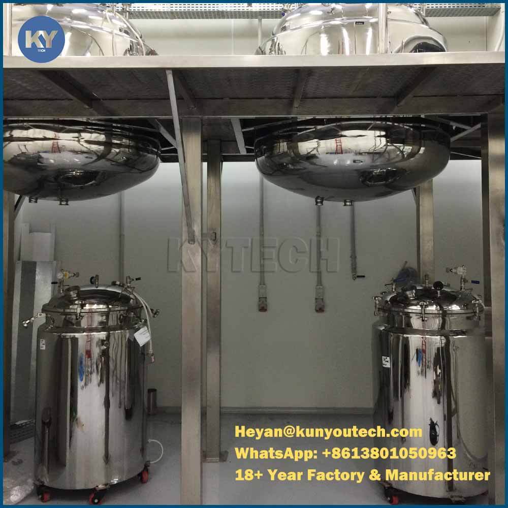 3Proses pencampuran/pengadukan dioperasikan melalui kopling loop penghubung dan terdiri dari pluralitas split agitator dengan transmisi yang stabil dan efek homogenisasi yang lebih baik.Seluruh tubuh tangki terbuat dari stainless steel.
